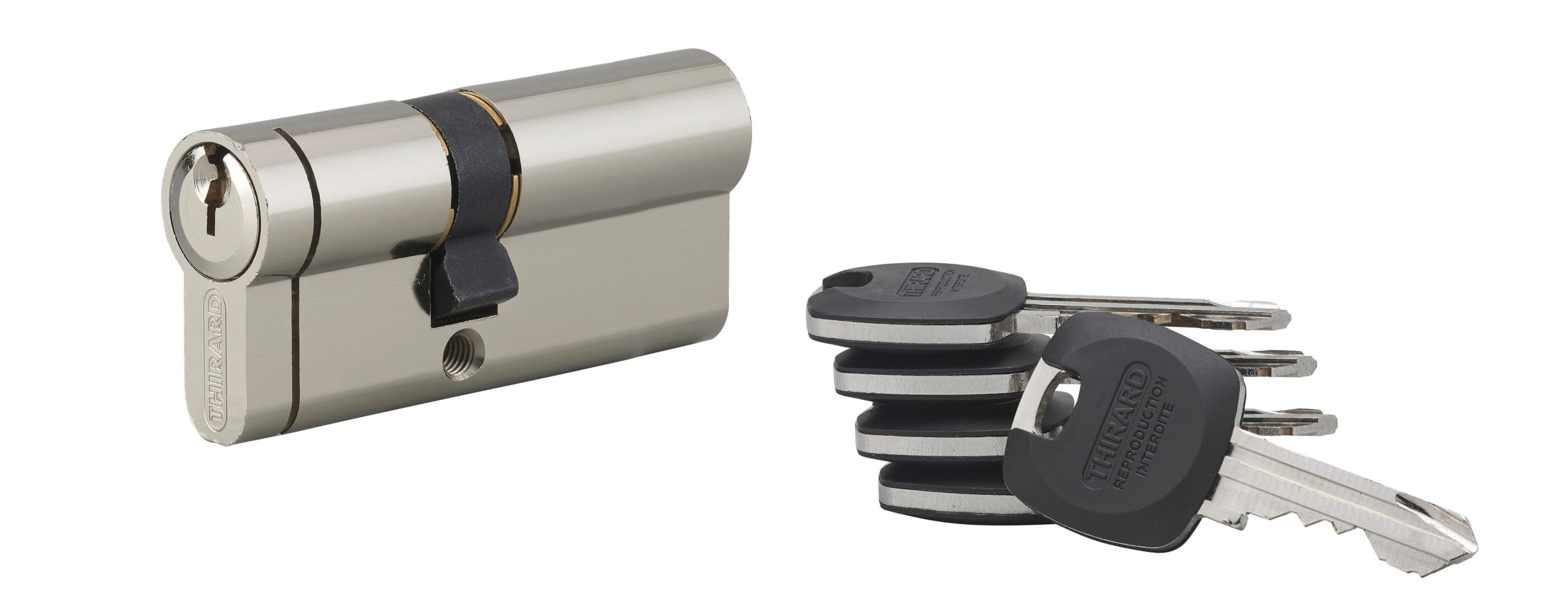 描述 : 歐式黃銅鎖膽. 5栓銷機制. 針鑽防護 + 第一個栓銷 + 硬化鋼推桿.鎖膽突出部分有防鑽防入侵保護(防卡扣). 防撕裂面板. 5 把鍍鎳黃銅鑰匙,附帶個人安全卡,只可在工廠復制鑰匙. 鎖膽內部的防鉤部件禁止在工廠外進行任何復制. 膽內部部件防撬,禁止任何出廠複製. 選項:防刺針. 表面處理: 鍍鎳. 版本: 可以使用可拆卸旋鈕進行安裝. 30×10 的可調節面板(可根據要求提供其他尺寸). 用途: