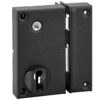 Description: Trunk and striker stamped steel. Brass bolt, brass U-turn. 3-turn mechanism. Reminder of the U-turn by the key. Double cylinder brass 5 long pins. 45 mm. Square?6?mm. Cylinder and steel clutter inlet. 3 nickel-plated brass keys. Finish: Epoxy black granite Version: A pull. Right and left. Cylinder HG5, TRANSIT2. Possibility of flowchart compatible with HG5 and Transit 2 system. Usage: