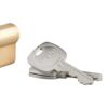 European brass profile. 5 pin mechanism. Anti-drilling protection hardened steel pins at the 2 key ways. Driver cam made of powdered metal. 2 x 3 keys. Change of combination : in case of loosing keys of the first set, introduce a key of the second set = all keys of the first combination can’t be used.