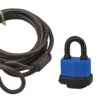 Description: PVC sheathed steel cable Finish: Matching colors Version: 300345 – with 40 mm padlock with waterproof slats PVC shell and PVC sheathed handle. Use: Cycles – Garden sheds