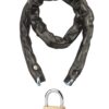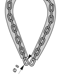 Description: Galvanized cemented steel chain. PVC sheath Finish: PVC Version: 563457 with 45 mm Mach 2 padlock Use: Cycles – Barriers