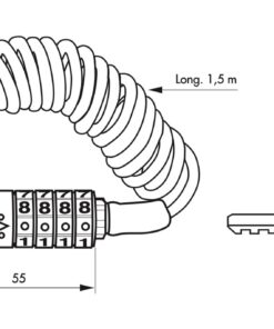 Description: PVC sheathed steel cable. Mechanism with 4 viroles with modifiable combination. 10,000 possible combinations. Finish: Black Version: Use: Cycles – Electric scooter Accessory: