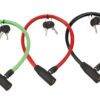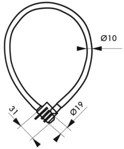 Description: Steel cable Ø 5 mm, length 0.50 m. PVC sheathed. Combination mechanism with 3 viroles. Finish: Assorted colors Version: Use: Cycles