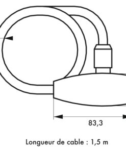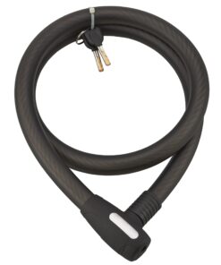 Description: PVC sheathed cemented steel cable. 2 reversible keys. Finish: Black Version: Use: Cycles – Motorcycles – Barrrières