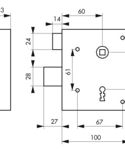 Description: Arched steel trunk and striker. Steel bolt and U-turn. 2-turn mechanism. Square 8 mm. 2 nickel-plated keys. 6 variures. Finish: Zingué Version: Right and left. Draft. Pushing. Usage: