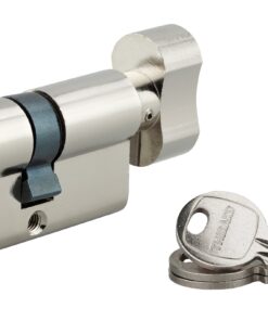 Description: European brass profile. Mechanism with 5 pins. Lock cylinder with anti-tear panneton. 3 nickel-plated steel wrenches. Finish: Nickel-plated Version: Use: