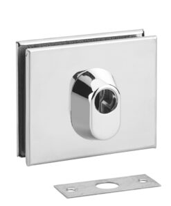Description: Stamped brass chest. One-piece bolt with cemented insert. Lands on the door song. Ref: 008435 does not require a notch in the door. Fastening by 2 clamping screws. Gasket. Flat striker. Ref 008435 to be used with a cylinder 30 x 10 mm. Ref 008358 to be used with a cylinder 30 x 30 mm Finish: Chrome, other finishes on request Version: Use: Glass door 8 to 10 mm thick