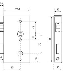 Description: Galvanized steel lock, raw steel trunk to be welded, 3mm protruding U-turn, 2-turn mechanism, 60mm axis, 8mm square, for PE cylinder. Finish: Version: Width 30mm, 40mm and 50mm. Use: Grid and portal.