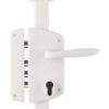 Description : Galvanized steel lock, raw steel trunk to be welded, automatic locking against bolt, axis 60mm, square 8mm, for PE cylinder. Ref.072927: flat striker stainless steel double empennage, delivered with 2 screws TF M4x8. Finish: Version: Right, Left. Use: Grid and portal.