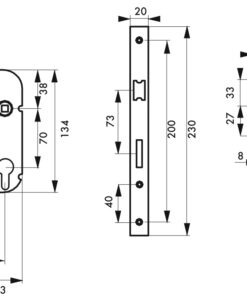 Description: Stamped steel chest. Steel headrest. Reversible alloy U-turn without disassembling the trunk. Alloy bolt. Flat steel striker. 1-turn mechanism. Square 7 mm, between axis 70 mm. No reminder 1/2 turn by the key. Finish: White Epoxy (V) – Zingué (Z) Version: Square headrest (BC). Headrest round ends (BR). With brass profile cylinder, 30 x 30 mm, 3 keys. Use: Door < 40 kg, (NOT GUARANTEED IN CASE OF COUNTER-BEQUILLAGE).