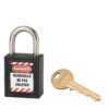 Description: Non-conductive ABS body. Stainless steel handle. Pin mechanism. Double anchoring. “Prisoner” key: the padlock must be closed to take back the key. 1 brass wrench. Comes with a set of labels. Finish: Red, orange, yellow, green, blue, black, purple, white, brown Version: Nylon handle dielectric protection, anti-sparks. Padlock on the same combination. Pass (PG, PGPP). Free key (on request). Option: without key retention and automatic closing. Use: Padlock resistant to shocks, heat, corrosion. Ideal for electrical applications. See usage table page 237