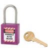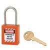 Description: Non-conductive ABS body. Stainless steel handle. Pin mechanism. Double anchoring. “Prisoner” key: the padlock must be closed to take back the key. 1 brass wrench. Comes with a set of labels. Finish: Red, orange, yellow, green, blue, black, purple, white, brown Version: Nylon handle dielectric protection, anti-sparks. Padlock on the same combination. Pass (PG, PGPP). Free key (on request). Option: without key retention and automatic closing. Use: Padlock resistant to shocks, heat, corrosion. Ideal for electrical applications. See usage table page 237