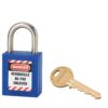 Description: Non-conductive ABS body. Stainless steel handle. Pin mechanism. Double anchoring. “Prisoner” key: the padlock must be closed to take back the key. 1 brass wrench. Comes with a set of labels. Finish: Red, orange, yellow, green, blue, black, purple, white, brown Version: Nylon handle dielectric protection, anti-sparks. Padlock on the same combination. Pass (PG, PGPP). Free key (on request). Option: without key retention and automatic closing. Use: Padlock resistant to shocks, heat, corrosion. Ideal for electrical applications. See usage table page 237