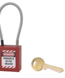 Consignment padlock 40 mm sheathed stainless steel cable Ø 4.76 X 150 mm – 1 key RED