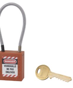 Description: Non-conductive ABS body. Sheathed stainless steel cable. Pin mechanism. 1 brass wrench. Comes with a set of labels. Finish: Red, orange, yellow, green, blue, black, purple, white, brown Version: Sheathed cable dielectric protection, anti-sparks. Padlock on the same combination. Pass (PG, PGPP). Free key (on request). Option: automatic closing on Ø 4.76. Use: Padlock resistant to shocks, heat, corrosion. Ideal for electrical applications. The flexibility of the cable allows the condemnation of devices on which a standard handle is not suitable.