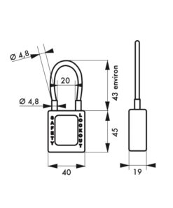 Description: Non-conductive ABS body. Sheathed stainless steel cable. Pin mechanism. 1 brass wrench. Comes with a set of labels. Finish: Red, orange, yellow, green, blue, black, purple, white, brown Version: Sheathed cable dielectric protection, anti-sparks. Padlock on the same combination. Pass (PG, PGPP). Free key (on request). Option: automatic closing on Ø 4.76. Use: Padlock resistant to shocks, heat, corrosion. Ideal for electrical applications. The flexibility of the cable allows the condemnation of devices on which a standard handle is not suitable.
