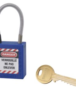 Consignment padlock 40 mm sheathed stainless steel cable Ø 4.76 X 90 mm – 1 blue key