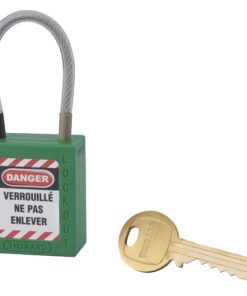 Consignment padlock 40 mm sheathed stainless steel cable Ø 4.76 X 90 mm – 1 key GREEN