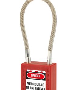 Description: Non-conductive ABS body. Sheathed stainless steel cable. Pin mechanism. 1 brass wrench. Comes with a set of labels. Finish: Red, orange, yellow, green, blue, black, purple, white, brown Version: Sheathed cable dielectric protection, anti-sparks. Padlock on the same combination. Pass (PG, PGPP). Free key (on request). Option: automatic closing on Ø 4.76. Use: Padlock resistant to shocks, heat, corrosion. Ideal for electrical applications. The flexibility of the cable allows the condemnation of devices on which a standard handle is not suitable.