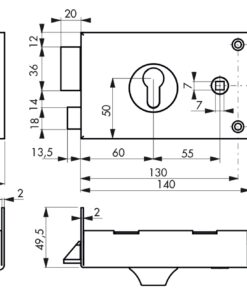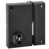 Description: Arched steel trunk and striker. Galvanized steel bolt. Galvanized steel U-turn. 2-turn mechanism. Reminder of the U-turn by the key. Square 7 mm. Finish: Epoxy black granite Version: Print. Right and left. Usage: