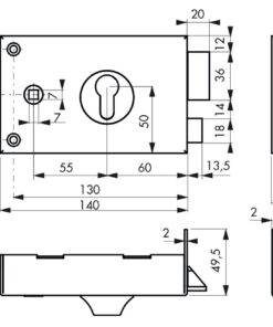 Description: Arched steel trunk and striker. Galvanized steel bolt. Galvanized steel U-turn. 2-turn mechanism. Reminder of the U-turn by the key. Square 7 mm. Finish: Epoxy black granite Version: Print. Right and left. Usage: