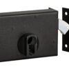 Description: Arched steel trunk and striker. Galvanized steel hook2-turn mechanism. Finish: Zingué Version: Right and left Use: Exterior sliding gate
