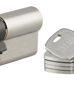 European brass profile. 8 nickel silver pin mechanism. Protection against drilling by hardened steel insert andpins. Protection against the destruction of the projecting portion of the cylinder (anti-snap). Drivercam made of powdered metal. 4 reversible brass nickel plated keys with a personal security card for key copies.