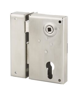 Description : Trunk and stainless steel striker 304 L arched. Peach and half turn chrome brass. Mechanism with 2 turns bolt 1/2 turn reversible for door opening to the outside. Square 7 mm. Cylinder inlet and chrome brass clutter. Finish: Brushed stainless steel Version: Right and left Use: