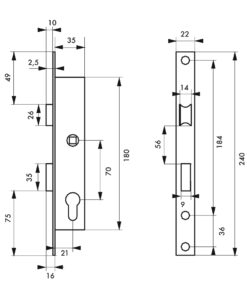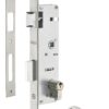 Description: Steel chest. Stainless steel headrest. Reversible U-turn without disassembling the trunk. Reminder of the 1/2 turn by the key. Nickel-plated alloy. Flat stainless steel striker. Square 8 mm with sheath reducer 7 mm. Inter-axis 70 mm. Finish: Zingué Version: With nickel-plated brass profile cylinder 30 x 30 mm, 3 keys Use: Metal carpentry door