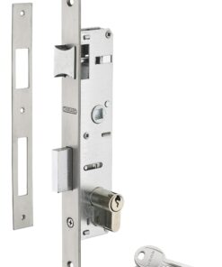 Description: Steel chest. Stainless steel headrest. Reversible U-turn without disassembling the trunk. Reminder of the 1/2 turn by the key. Nickel-plated alloy. Flat stainless steel striker. Square 8 mm with sheath reducer 7 mm. Inter-axis 70 mm. Finish: Zingué Version: With nickel-plated brass profile cylinder 30 x 30 mm, 3 keys Use: Metal carpentry door