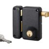 Description: Trunk and striker stamped steel. Bolt and half-turn galvanized steel. 2-turn mechanism. Reminder of the U-turn by the key. Square 7 mm. Brass cylinder inlet. Double brass cylinder with 5 pins. Ø 23 mm long. 45 mm. 3 nickel-plated keys. Possibility: Mounting with cylinder Transit 2 Finish: Epoxy black granite Version: A pull. Bolt and brass U-turn in canned packaging. Protection against tearing off the cylinder under shell conditioning. Usage:
