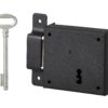 Description: Arched steel chest. Arched steel leg striker. Alloy bolt. Long steel barrel. 35 mm. 1 polished wrench (2 keys for 391117/391127). 6 variures. Finish: Epoxy black granite Version: Right and left Use: