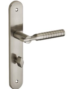 Description: Stamped steel plates. Molten alloy crutches. square steel 7 mm. Recall spring. Screws secable metals. Inter-axis of fixation 195 mm. Finish: Brushed nickel plated Version: Without hole for interior door. With condemnation button for bathroom door and W-C. With key hole for interior and exterior door. With European cylinder hole for exterior door. Usage: