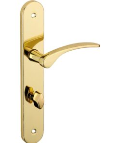 Description: Stamped steel plates. Molten alloy crutches. square steel 7 mm. Recall spring. Screws secable metals. Inter-axis of fixation 195 mm. Finish: Brass Version: Without hole for interior door. With condemnation button for bathroom door and W-C. With key hole for interior and exterior door. With European cylinder hole for exterior door. Usage: