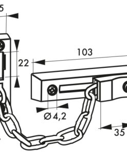 Description: Body and platinum alloy. Steel chain. Finish: Nickel satin Version: Use: Entrance door lock in the interlocking position.