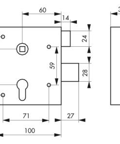 DRINKS. Lock in security wall with Cylinder. prof. with clutter 100 x117 mm A60 reverss. pulling or pushing