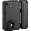 Description: Trunk and striker stamped steel. Bolt and half-turn galvanized steel. 2-turn mechanism. Reminder of the U-turn by the key. Square 6 mm. Cylinder and brass clutter inlet. For European profile cylinder. 30 x 60 mm, for 45 mm door. Finish: Epoxy black granite Version: A pull. Lock when pushing. Right and left. Right and left pushing. Bolt and brass U-turn in canned packaging. Axis 60 mm for LAP replacement without bolt and 5 mm protruding U-turn. Usage: