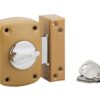 Description: Trunk and striker stamped steel. Nickel-plated steel bolt. Chrome ABS button. Brass cylinder with 5 pins. Brass starter. 3 nickel-plated steel wrenches. Finish: Epoxy bronze, white, black, chrome Version: Double cylinder. Without button cylinder. No buttons. With bolt 160 mm cylinder 30 mm for garage door. Use: Front door