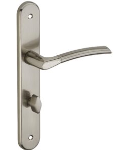 Description: Stamped steel plates. Molten alloy crutches. square steel 7 mm. Recall spring. Screws secable metals. Inter-axis of fixation 195 mm. Finish: Nickel-plated satin Version: Without hole for interior door. With condemnation button for bathroom door and W-C. With key hole for interior and exterior door. With European cylinder hole for exterior door. Usage: