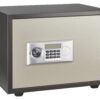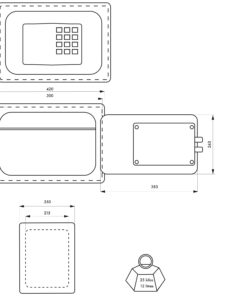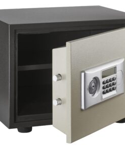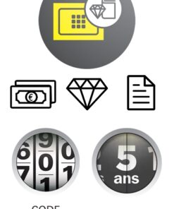 Steel chest. Heat and fire protection 01:00 User code from 6 to 8 digits. Internal power supply with 4 x 1.5V LR6 batteries (batteries included). Built-in alarm. Locking by 2 bolts chrome steel diam 20mm. 3 keys . Emergency key rescue (3 keys provided)