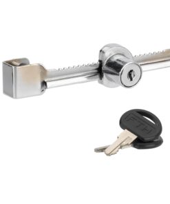 Description: Steel rack. Glitter cylinder. 2 nickel-plated PVC-sheathed wrenches. Finish: Nickel-plated Version: Use: Sliding door display case