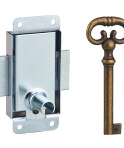 Description: Steel chest and bolt. Pose to the right or left. 1 aged brass key. Finish: Brass or galvanized steel Version: Use: Furnishing door