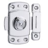 Description : Chrome stamped brass chest. Chrome-plated brass striker. Fleece brass button. Chrome steel bolt. Finish: White lacquered steel Version: Use:
