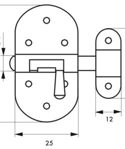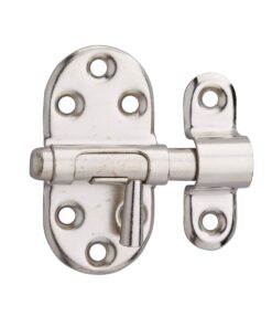 Description: Platinum stamped steel. Stamped steel striker. Pear bud. Sliding round bolt. Finish: Zingué. Nickel plated. Version: Usage:
