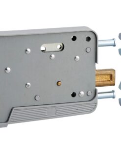 Steel cover with PVC belt. Steel flat striker. Aluminium bronze bolt. Inside locking and unlocking by knob. Door stop included. Accessories : PVC outside handle, square plate for flat striker.