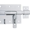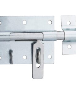 Description: Arched steel plate. Arched steel striker. Padlock holder paw. Sliding round bolt. Finish: Zingué Version: Use: