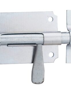 Description: Arched steel plate. Arched steel striker. Pear bud. Sliding round bolt. Finish: Zingué Version: Use: