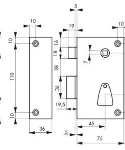 Description: Arched steel trunk and striker. Bolt and half-turn steel protruding 5 mm. Alloy barrel length 45 mm. Steel key entry on safe. Mechanism with 6 gorges, 2 turns. Square 7 mm. 2 nickel-plated keys. 20 variures. Steel key entry. Brass clutter. Finish: Epoxy black granite Version: Right and left Use: