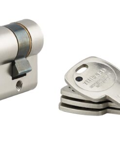 Description: European nickel-plated brass prol. Mechanism from 5 to 13 pins. Protection against drilling by 1st pin + hardened steel pusher. Protection against the raction of the protruding part of the cylinder (anti-snap). Anti-tearing panel. 5 nickel-plated brass keys with property card allowing the reproduction of keys. exclusively in the factory. Anti-hooking balls internal to the cylinder prohibiting any reproduction outside the factory. Option: Anti-piercing needle. Finish: Nickel-plated. Version: Possibility of mounting with detachable panel Adjustable panel for the dimension 30 x 10. Possibility of mounting with detachable button. Usage: