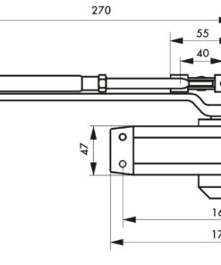 Description: Hydraulic door closer. Molded alloy body. Mount right or left. Possible adjustment of the closing speed and the final jerk per screw. Finish: Lacquered grey, white, black Version: Force 3 / Force 4 Use: Automatic closing of all doors.